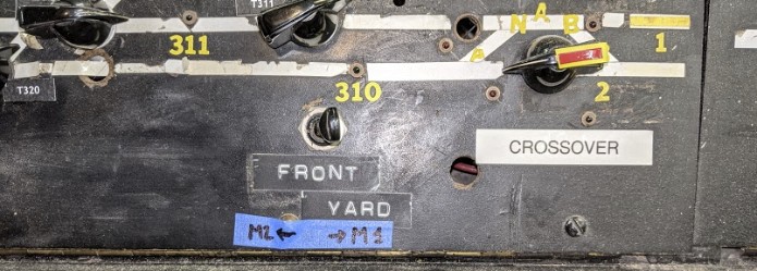 It’s worth noting that this turnout is currently spiked. The tortoise is currently missing the spring wire, and there’s a short in the toggle button at the panel; because it offers little valuable operational benefit to us, I had thus disconnected it and spiked it for now.