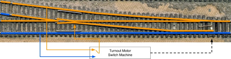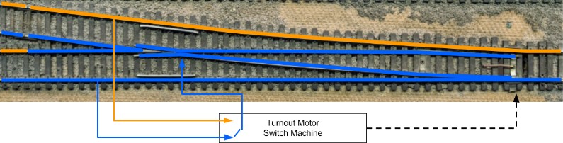 - Turnout frog takes power from the stock rails and feeds it to the frog.