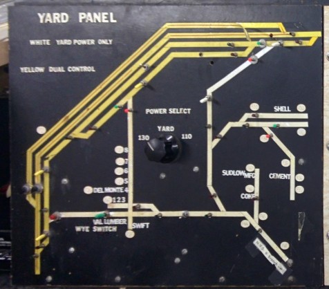 The yards have their independent throttles and tracks leads in and out of the yard have a power selector to dictate which throttle is powering an engine entering or leaving a yard. Later radio-controlled DC boosters and MRC power supplies were added.